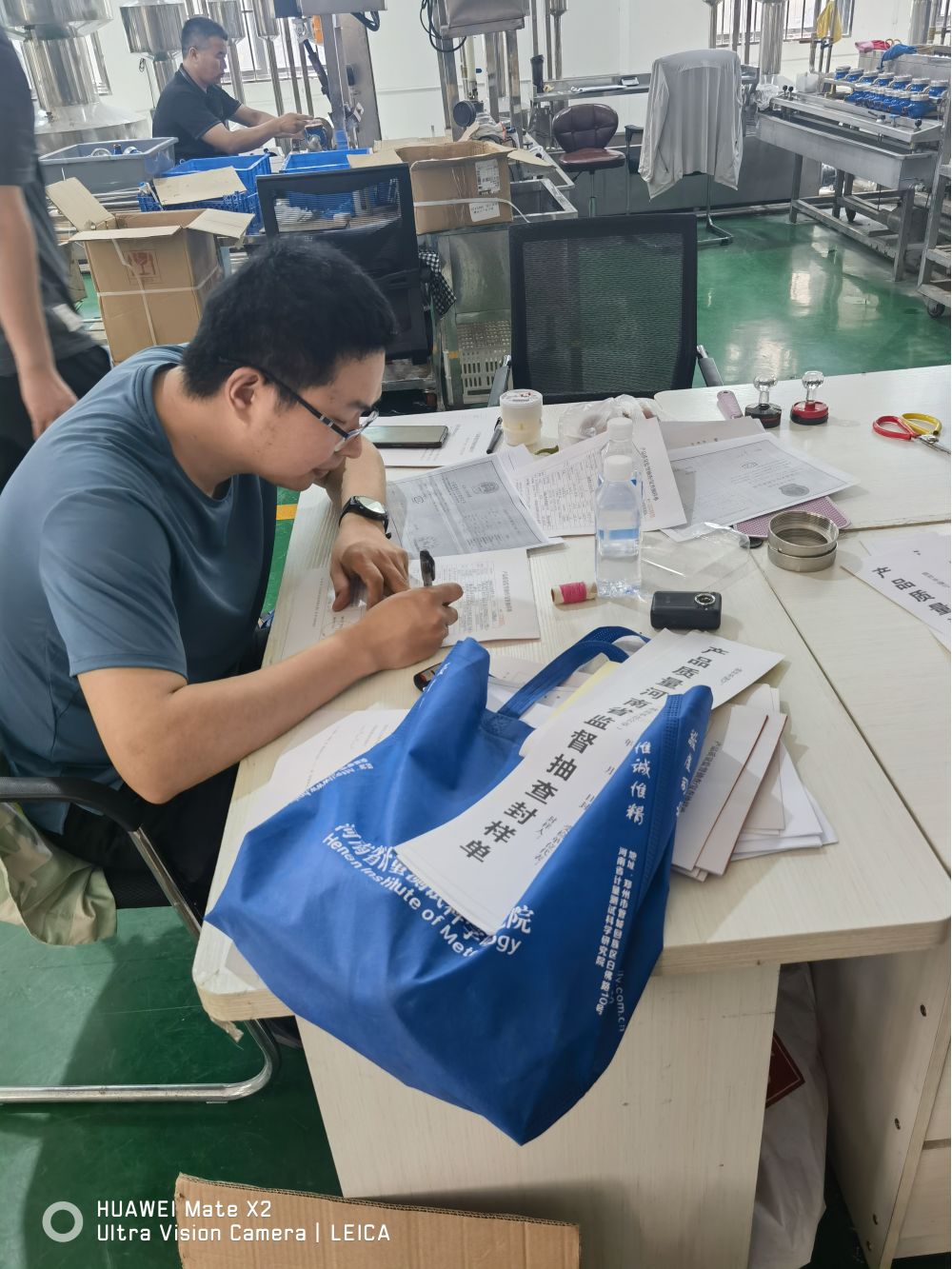 ?2023年 6月14日河南省市場監(jiān)督局委托河南省計量測試科學(xué)研究院付江紅、王偉鵬到商丘市清源儀表有限公司,對旋翼式冷水表、IC卡智能水表、電子遠(yuǎn)傳水表進(jìn)行年度定期抽檢工作。在商丘市清源儀表有限公司的積極配合下,保證抽樣的隨機(jī)性、真實性。在日常生產(chǎn)中,商丘市清源儀表有限公司嚴(yán)把質(zhì)量關(guān),做到每只出廠水表都符合國家質(zhì)量要求。